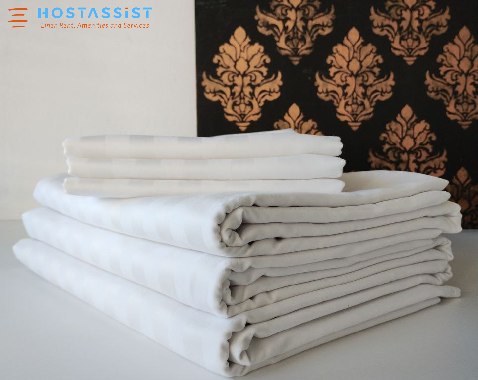 The fabric is white, premium quality (damast, saten), 100% cotton