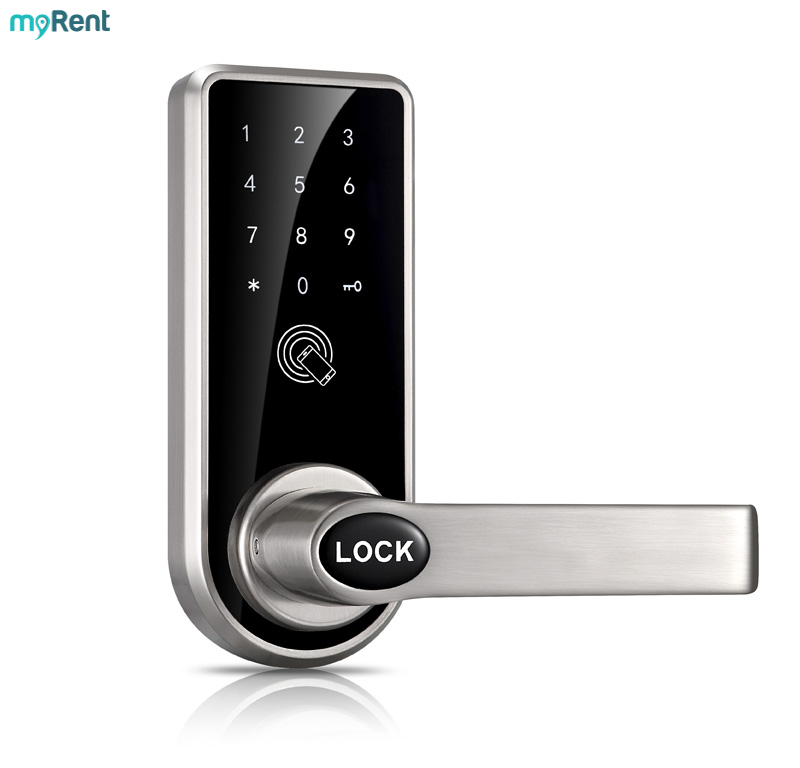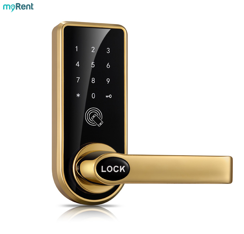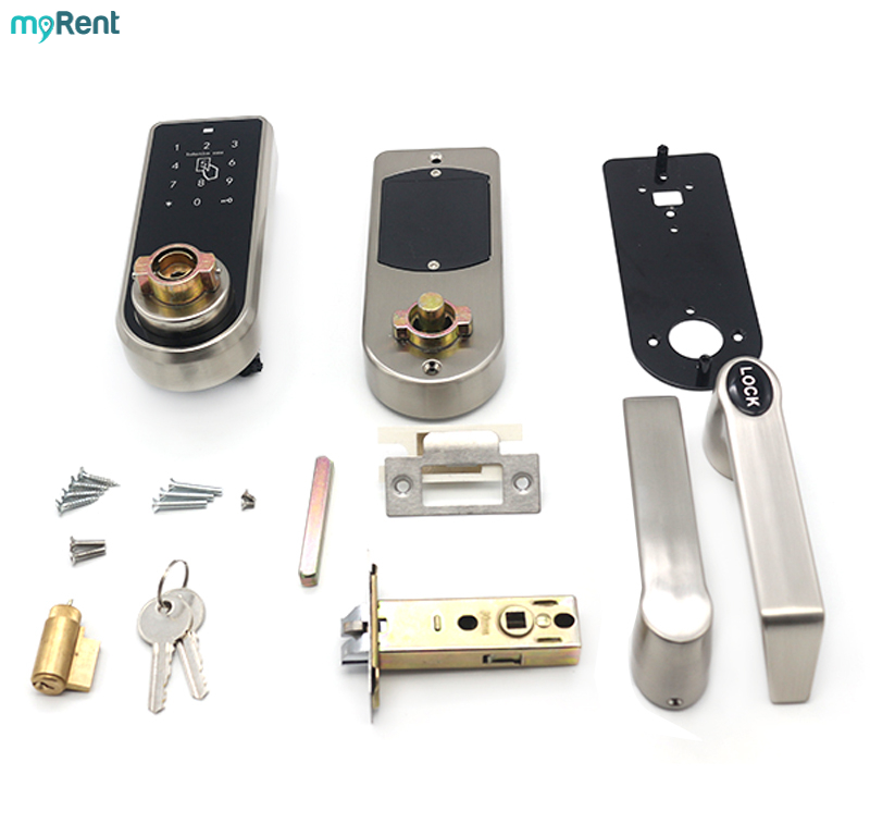 Rim latch door lock with 4-ways opening (keys, PIN, mobile application, card)